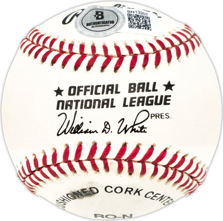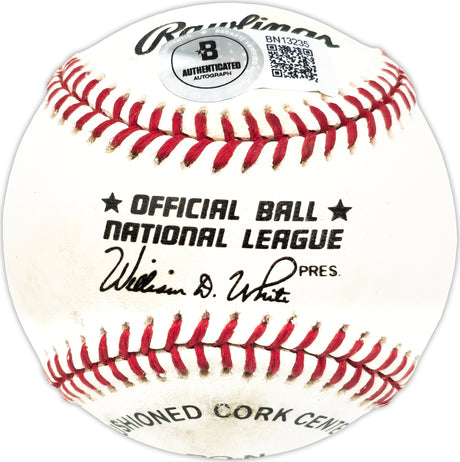 Pat McGlothin Autographed Official NL Baseball Brooklyn Dodgers Beckett BAS QR #BN13207