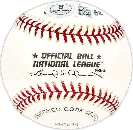Dick Schaap Autographed Official NL Baseball Sportswriter Broadcaster Beckett BAS QR #BM25533