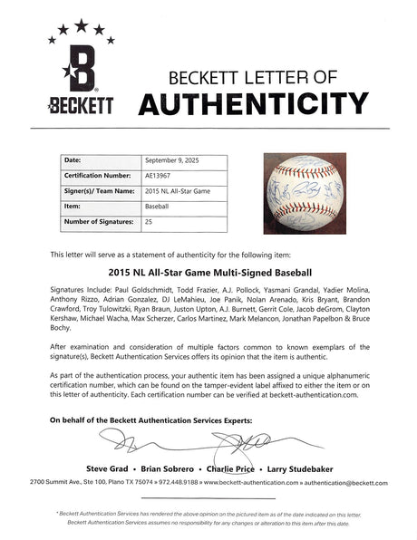 2015 NL ASG (25) Bryant, deGrom, Kershaw, Scherzer Signed Baseball BAS #AE13967