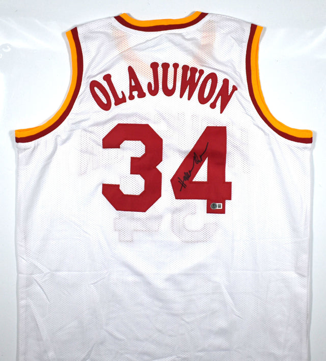 Hakeem Olajuwon Autographed White Pro Style Jersey - Beckett W Hologram *Black is backordered and will ship as soon as it is back in stock.