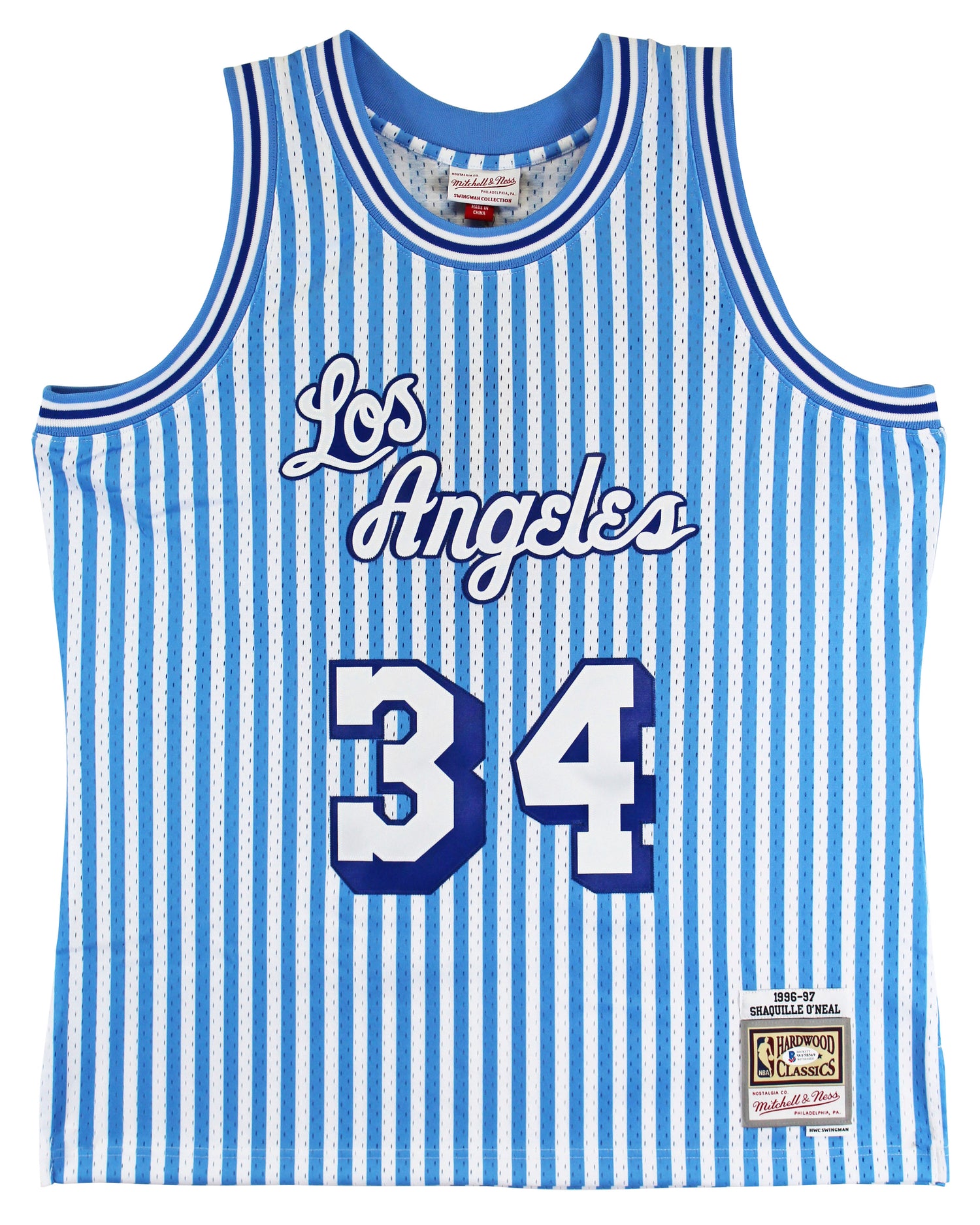 Own a piece of basketball history with this Autographed Blue & White Striped 1996-97 Mitchell & Ness Hardwood Classics Swingman Jersey, personally signed by Shaquille O'Neal—one of the most dominant centers in NBA history. This collectible celebrates O'Neal's era with the Los Angeles Lakers, making it a must-have for fans and memorabilia collectors.