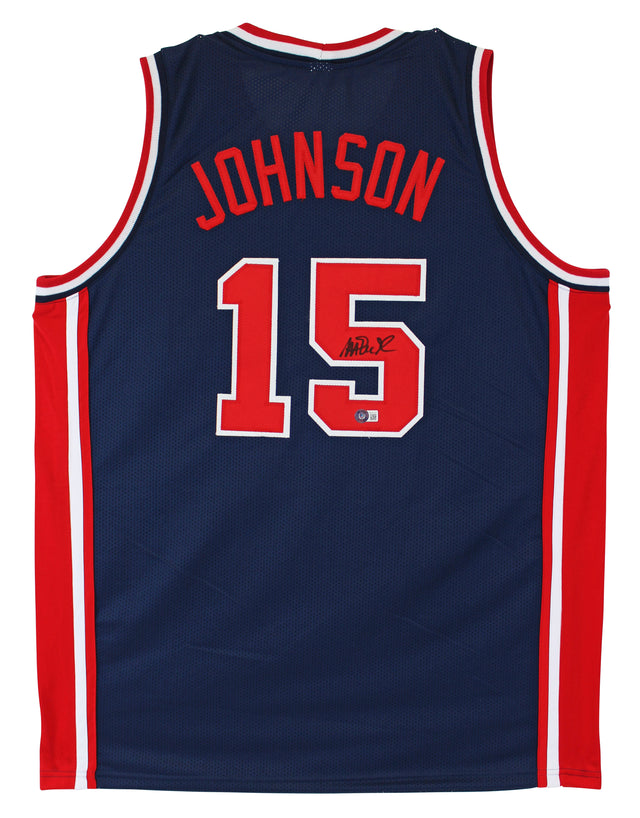 Magic Johnson Team USA Authentic Signed Blue Pro Style Jersey BAS Witnessed