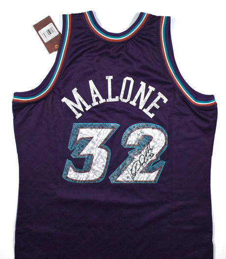 Karl Malone Signed Utah Jazz Mitchell & Ness Purple Jersey- Beckett W Hologram