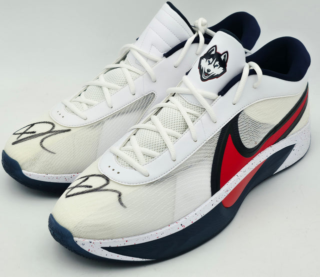 Own a true piece of college basketball history with this 2024 Player Exclusive (PE) Promo UCONN WHT/UNI RED-COL NVY Nike Zoom Freak 6 NCAA P shoe pair, hand-signed by Giannis Antetokounmpo. These ultra-rare, size 17 shoes were made exclusively for Giannis—matching the exact size worn by the NBA superstar— and designed specifically for promotional or personal use by athletes, never intended for public sale. These UCONN colorway editions pay tribute to one of the NCAA’s most elite programs, blending premium Nike performance engineering with collectible-level rarity. Officially authenticated by Beckett Authentication Services (BAS), these shoes are the real deal for collectors, fans, and sneaker enthusiasts alike.