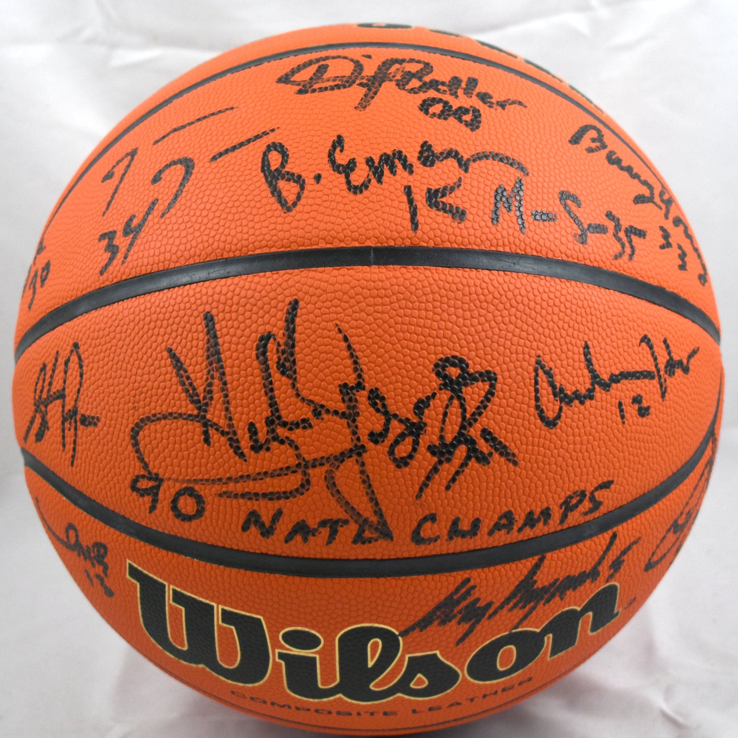 Own a piece of NCAA basketball history with this hand-signed Wilson basketball, autographed by Larry Johnson and his 1989-90 UNLV Runnin' Rebels teammates, including Stacy Augmon, Travis Bice, Dave Rice, James Jones, David Butler, Bryan Emerzian, Moses Scurry, and Anderson Hunt. This incredible collectible celebrates one of the most dominant teams in college basketball history, known for their high-energy play and impressive championship run.