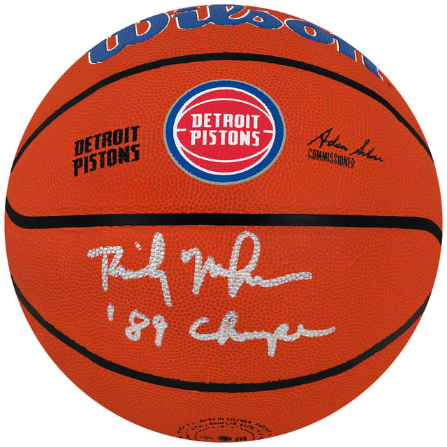 Own a piece of Detroit Pistons history with this Rick Mahorn signed Wilson NBA basketball, featuring the iconic Detroit Pistons logo and a special '89 Champs' inscription. A key member of the legendary "Bad Boys" Pistons, Mahorn played a crucial role in securing the team’s historic 1989 NBA Championship. This autographed basketball is a must-have for die-hard Pistons fans and serious collectors.