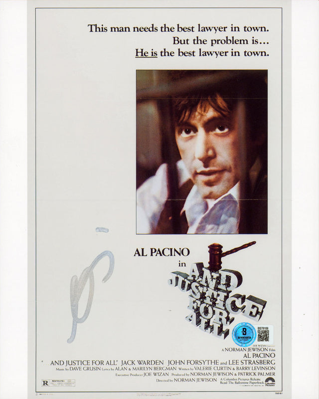 - Hand-signed by legendary actor Al Pacino from his role in “...And Justice For All”