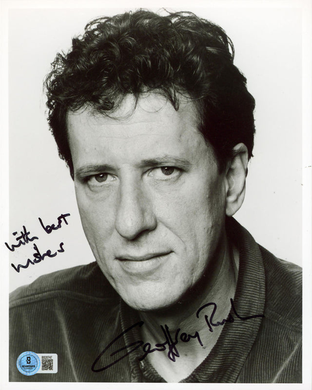 Own a timeless piece of cinematic history with this Autographed Vertical 8x10 Black & White Photo signed by Geoffrey Rush, acclaimed star of the film Shine. Best known for his Academy Award-winning role as pianist David Helfgott, Geoffrey Rush delivers a heartfelt notation of "With Best Wishes" alongside his signature, making this a unique and meaningful collectible for fans of classic cinema and pop culture memorabilia alike.