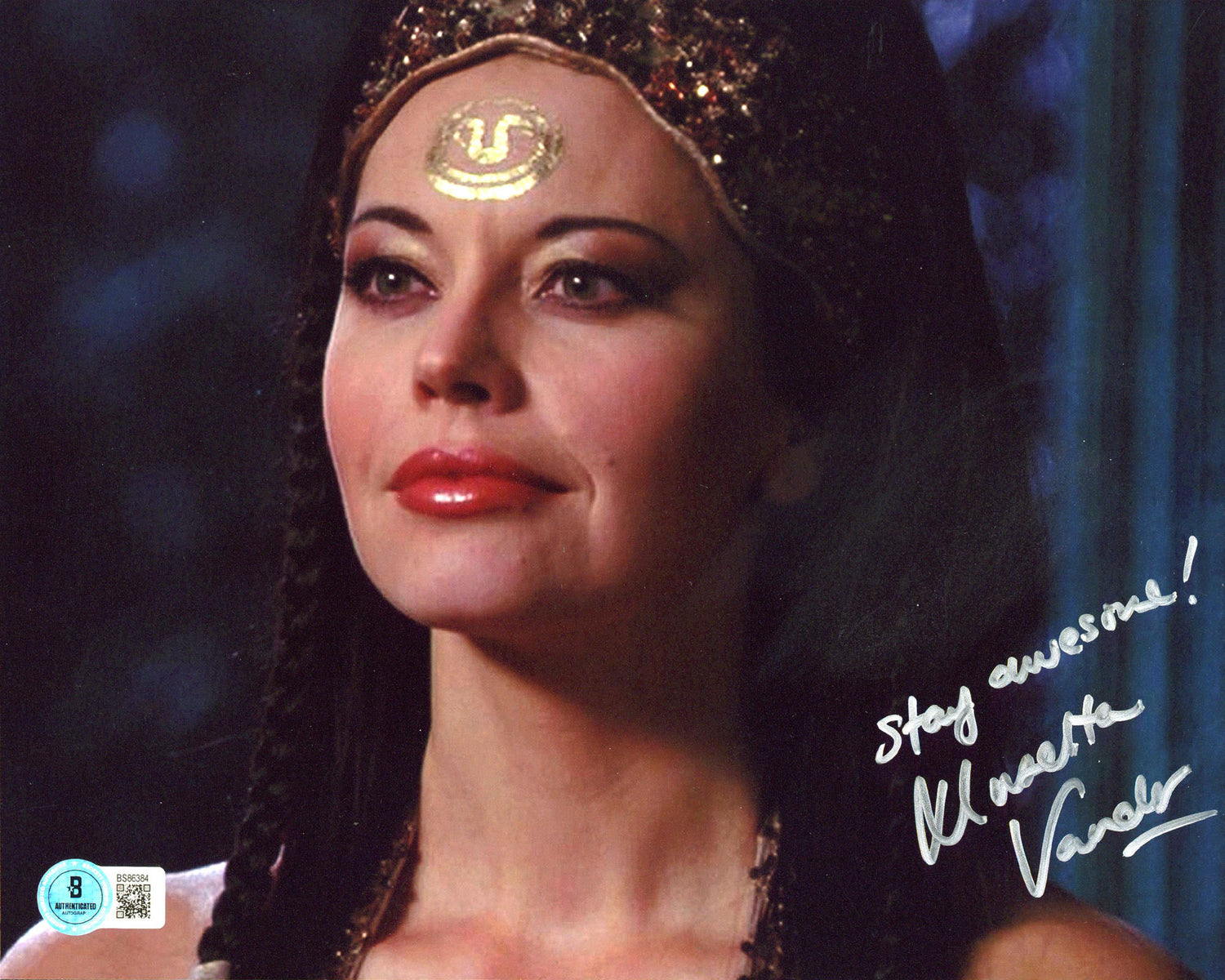 Own a unique piece of 1990s pop culture with this Autographed Horizontal 8x10 Photo signed by Musetta Vander, who portrayed the fierce Queen Sindel in the cult-favorite film Mortal Kombat: Annihilation. Featuring the personal inscription "Stay Awesome!", this collectible is a must-have for fans of the Mortal Kombat franchise and vintage cinema memorabilia enthusiasts alike.