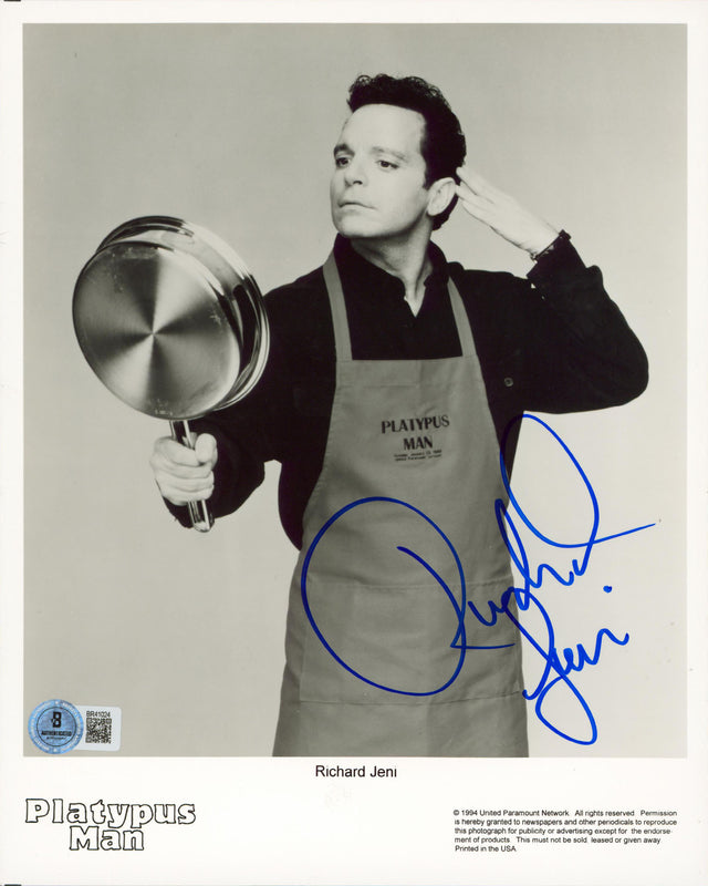 This authentic piece of pop culture history is a must-have for collectors and fans of classic 1990s comedy. This Autographed Vertical 8x10 Photo has been personally signed by Richard Jeni, the late, legendary stand-up comic and star of the cult classic TV series Platypus Man. Recognized for his sharp wit and dynamic stage presence, Jeni was a comedic force in both television and film during the '90s, and this signed photograph captures a moment of that brilliant legacy.