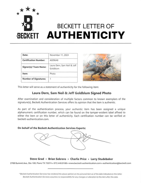 Jurassic Park (3) Neil, Dern & Goldblum Signed 16x20 Framed Photo BAS LOA