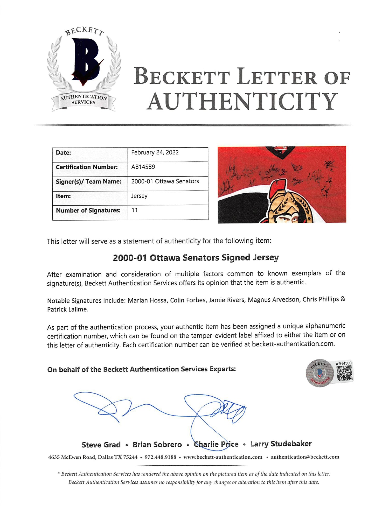 2000-01 Senators (11) Hossa, Forbes +9 Signed Red Pro Player Jersey BAS #AB14589 is backordered and will ship as soon as it is back in stock.