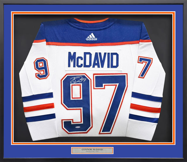 Celebrate NHL greatness with this stunning collector’s piece—a framed White Authentic Adidas Edmonton Oilers Jersey hand-signed by Connor McDavid. Known as one of the most electrifying players in modern hockey, Connor McDavid has already cemented his place as a franchise icon for the Edmonton Oilers and a generational talent in the NHL. This premium framed jersey is an ideal centerpiece for any serious memorabilia collection and the perfect tribute to McDavid’s legacy on the ice.