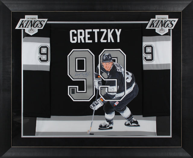 Kings Wayne Gretzky Signed Hand Painted Black CCM Framed Jersey BAS #AD04365