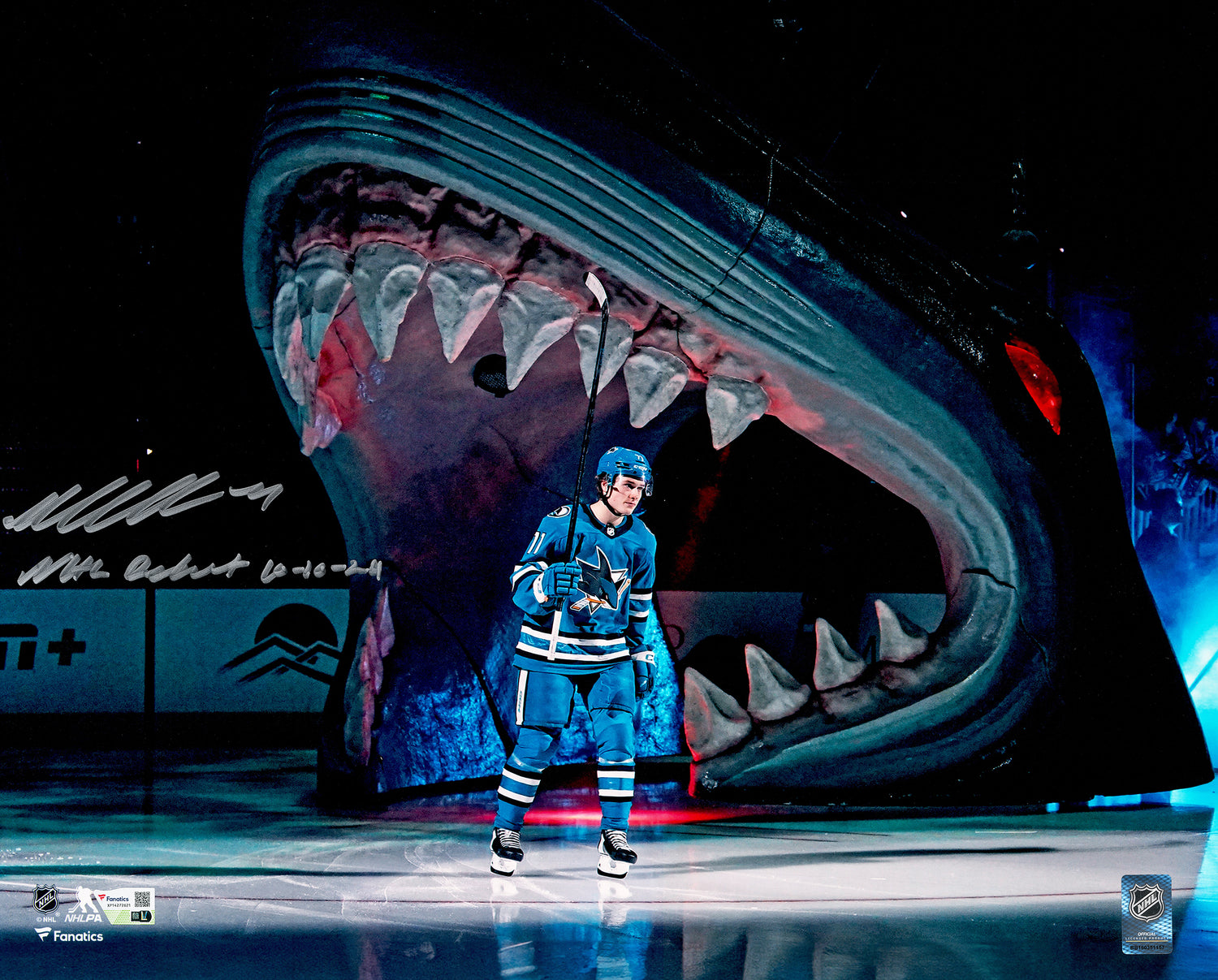 Macklin Celebrini Autographed 16x20 Photo San Jose Sharks "NHL Debut 10-10-24" Fanatics Holo Stock #236533
