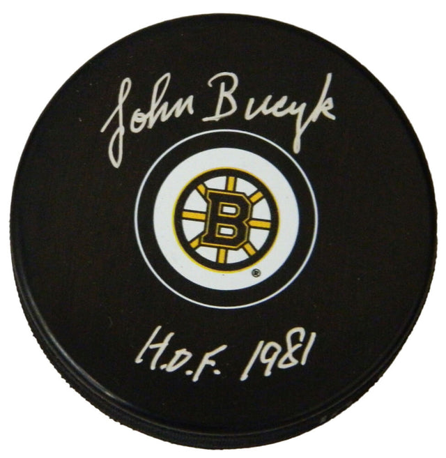 Johnny Bucyk Signed Boston Bruins Logo Hockey Puck w/HOF 1981