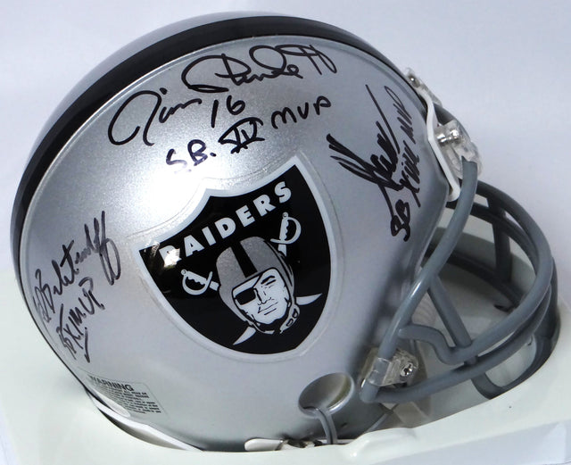 Celebrate the legacy of the legendary Oakland Raiders with this hand-signed Riddell Mini Replica Helmet, autographed by Marcus Allen, Fred Biletnikoff, and Jim Plunkett—three of the franchise’s most iconic Super Bowl MVPs. Each signature includes the inspiring inscription "SB MVP", commemorating their championship performances and adding Hall of Fame prestige to your memorabilia collection. This collectible is perfect for die-hard Raiders fans or sports memorabilia enthusiasts who value authentic, championship-caliber items.
