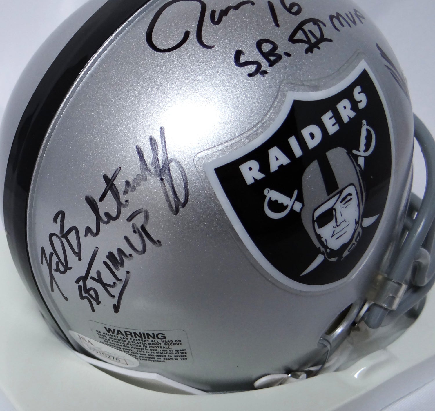 • Hand-signed by Marcus Allen, Fred Biletnikoff, and Jim Plunkett, legendary Oakland Raiders and Super Bowl MVPs