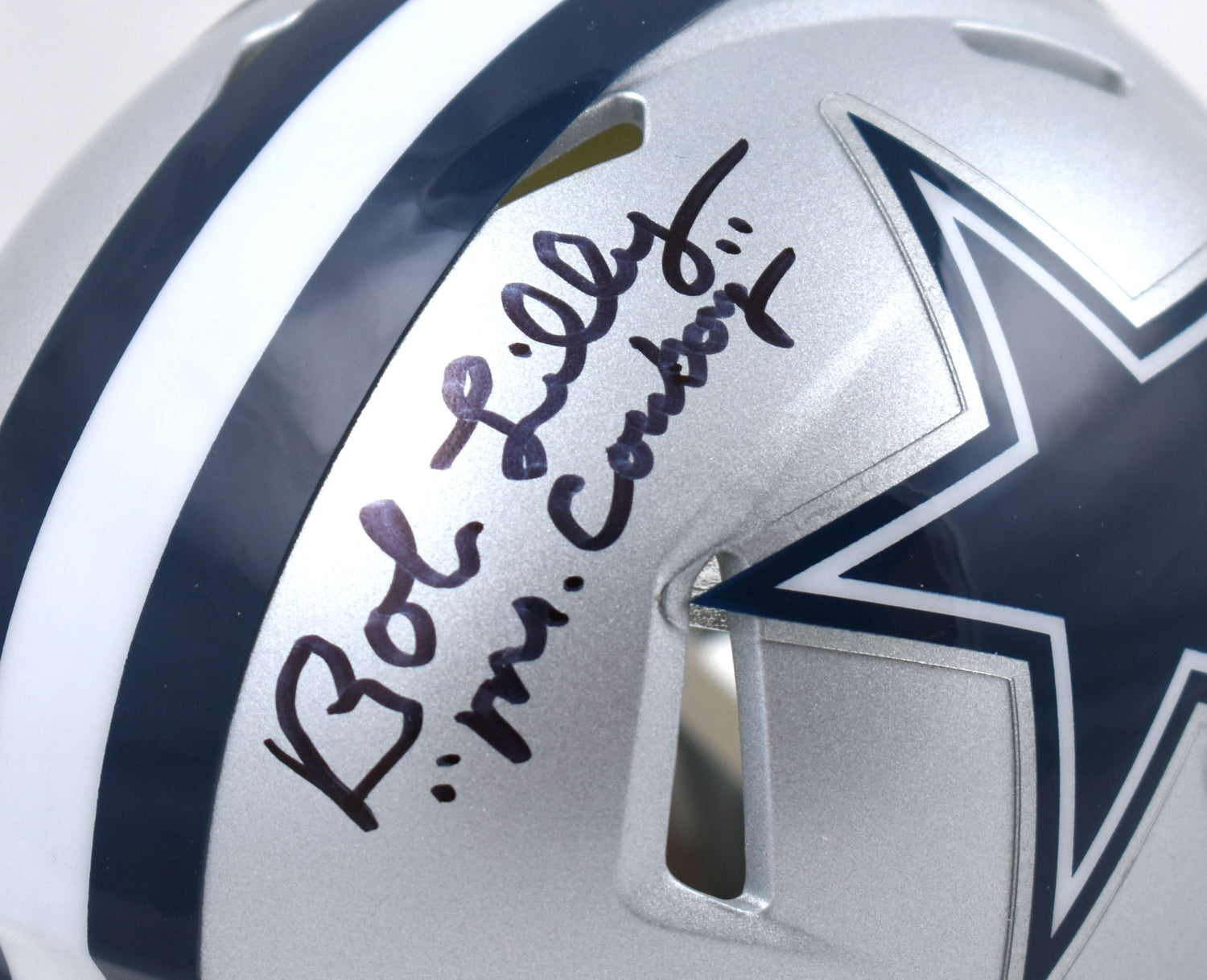 - Official Riddell Dallas Cowboys Speed Mini Helmet, personally signed by Bob Lilly