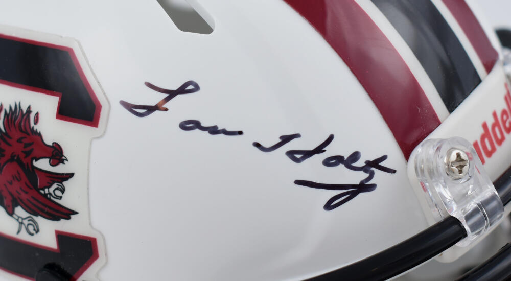 Own a piece of South Carolina Gamecocks history with this hand-signed Lou Holtz Riddell Speed Mini Helmet! A must-have for college football enthusiasts and memorabilia collectors, this autographed mini helmet celebrates the legendary coach's impact on the Gamecocks and the sport.