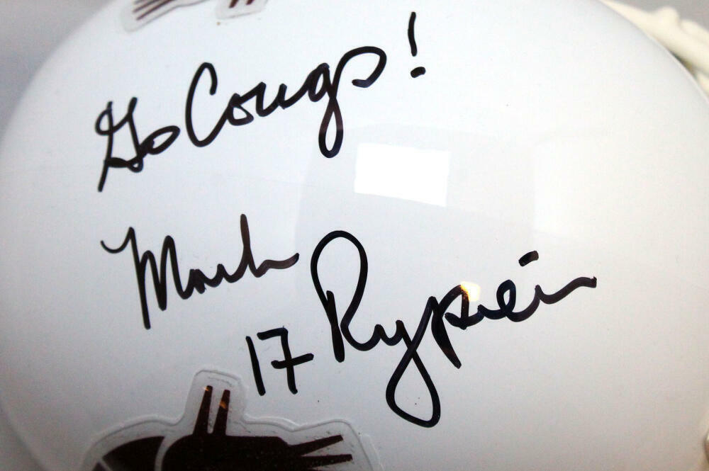 Mark Rypien Signed Washington State White Schutt Mini Helmet w/ Insc- BA W Holo