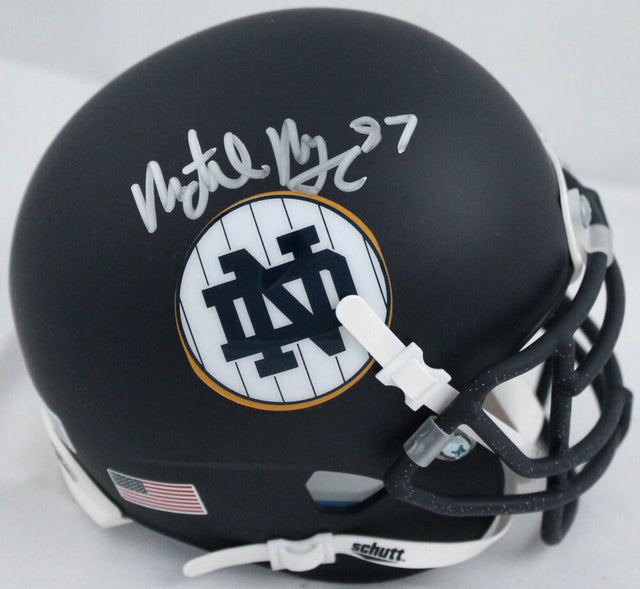 Own an iconic piece of Notre Dame Fighting Irish history with this Michael Mayer Autographed Schutt Blue Alternate Mini Helmet. Whether you're a devoted Fighting Irish fan or a seasoned memorabilia collector, this signed mini helmet is a must-have addition to your collection.