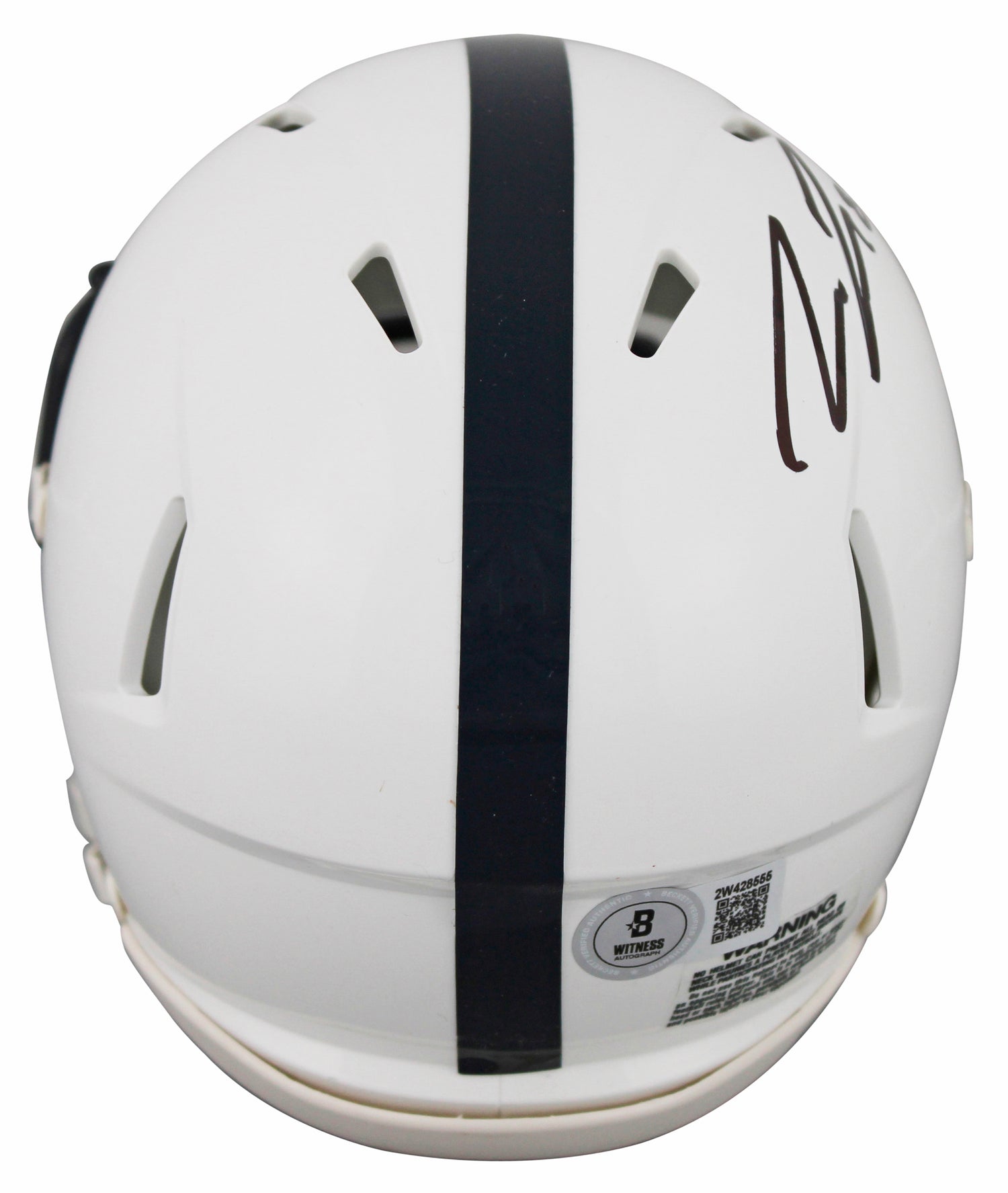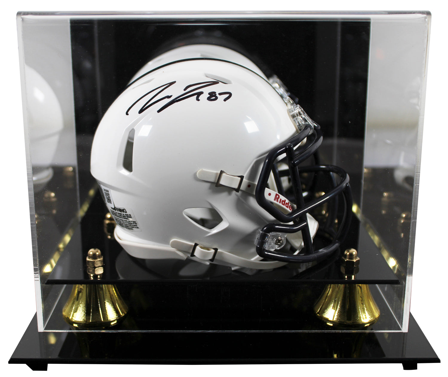 Own a piece of Penn State football history with this Pat Freiermuth Autographed Speed Mini Helmet, complete with a UV Mirrored Back Acrylic Display Case. A standout tight end for the Penn State Nittany Lions, Freiermuth's signature makes this a must-have collectible for Lions fans and sports memorabilia collectors alike. This autograph is 100% Authentic, verified through Beckett Authentication Services (BAS):