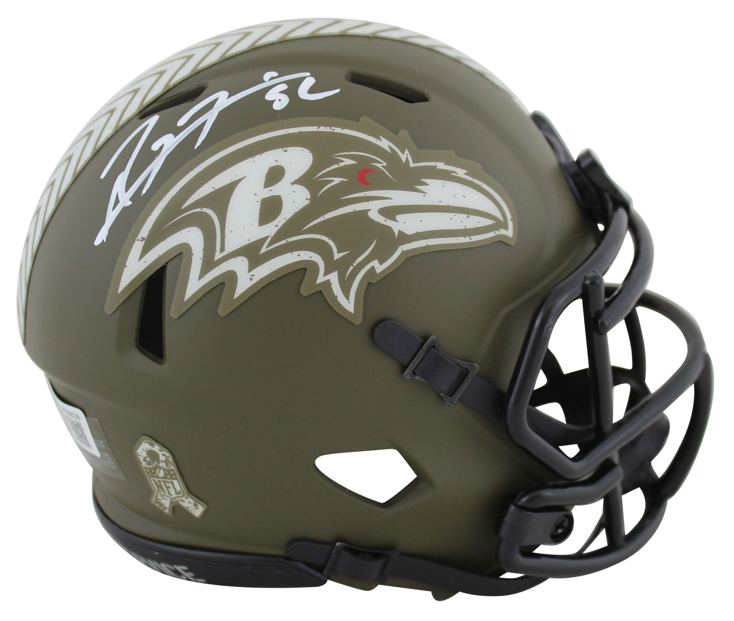 Own a piece of Baltimore Ravens history with this Ray Lewis Autographed Alternate Salute to Service Speed Mini Helmet. A perfect addition for serious collectors and devoted Ravens fans, this unique item was personally signed by Ray Lewis, one of the most legendary linebackers in NFL history.