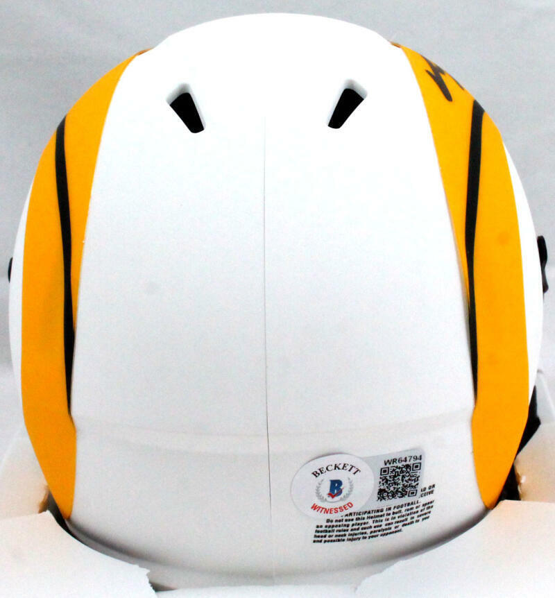 Own a piece of football history with this hand-signed Von Miller Los Angeles Rams Riddell Lunar Speed Mini Helmet. A true standout in any memorabilia collection, this autographed mini helmet celebrates the impact of one of the NFL’s most dominant defensive players.