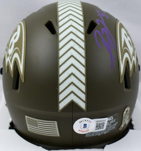 Ray Lewis Signed Ravens Salute to Service Speed Mini Helmet-Beckett W Hologram