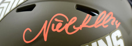 TJ Hockenson Signed Vikings Salute to Service Speed Mini Helmet- Beckett W Holo
