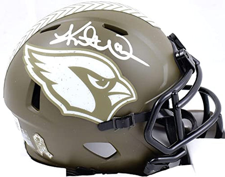 Kurt Warner Signed Cardinals Salute to Service Speed Mini Helmet-Beckett W Holo