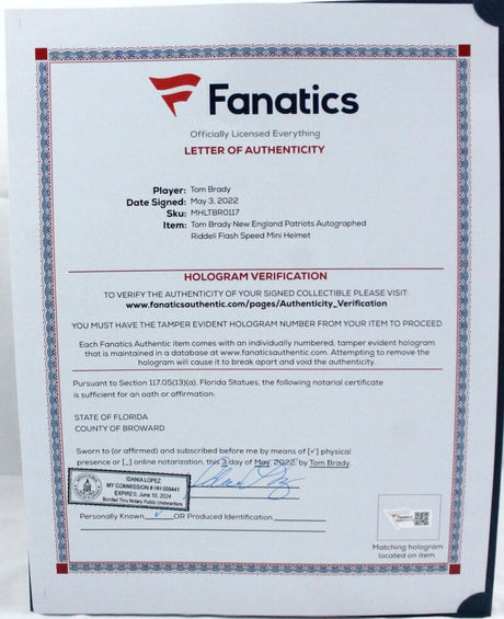 Very low stock (1 unit)$2,369Unit price /Unavailable Tom Brady Signed New England Patriots Riddell Speed Mini Helmet (Fanatics LOA)