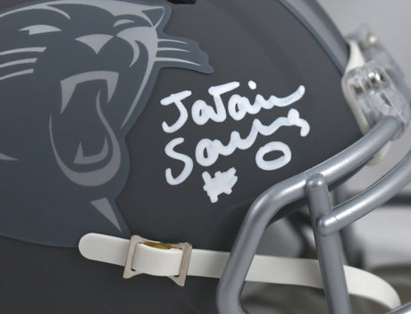 $629Unit price /Unavailable Ja'Tavion Sanders Autographed Panthers Slate Speed Mini Helmet - Beckett W Holo