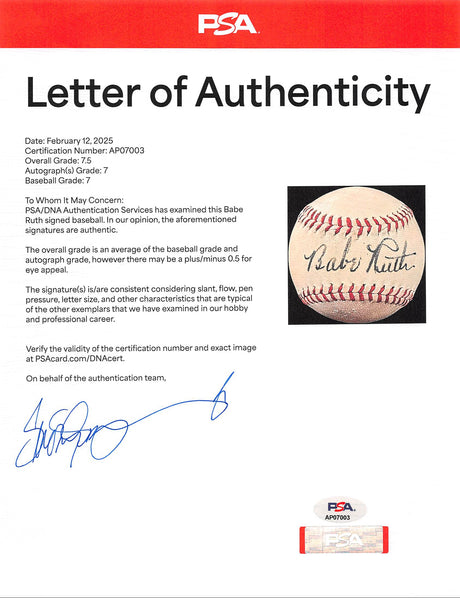 Yes. Every Babe Ruth autographed item sold on Pristine Marketplace is verified by industry-leading authentication services such as PSA, JSA, or Beckett. Each item ships with a Certificate of Authenticity and a tamper-evident hologram so you can buy with complete confidence.