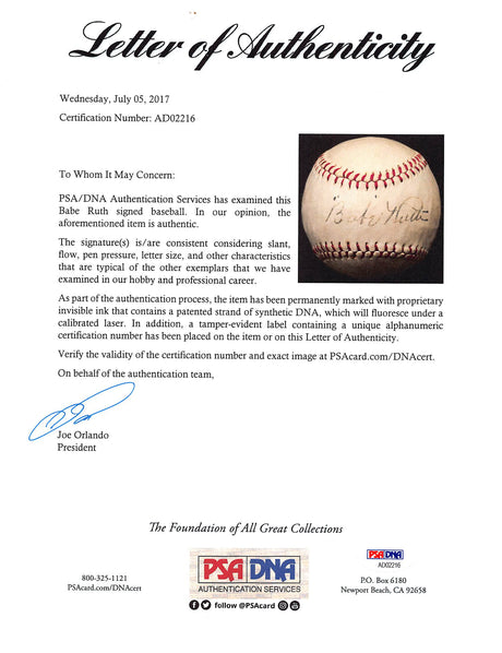 Very low stock (1 unit)$54,829Unit price /UnavailableBabe Ruth New York Yankees Signed 1928 1st Home Run Baseball PSA+BAS