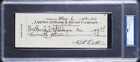 Very low stock (1 unit)$33,149Unit price /UnavailableYankees Babe Ruth Signed 3x8.25 Check Dated May 6, 1940 Auto NM-7 PSA/DNA Slab