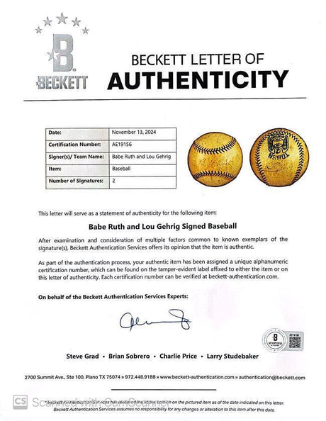 Babe Ruth, fondly known as "The Bambino," left an indelible mark on the game with his unparalleled hitting prowess and larger-than-life personality. Owning a piece of his legacy is a dream for any baseball devotee or memorabilia collector. Each item in our collection is authenticated through rigorous processes to ensure its legitimacy and value — learn more about our authenticity guarantee.