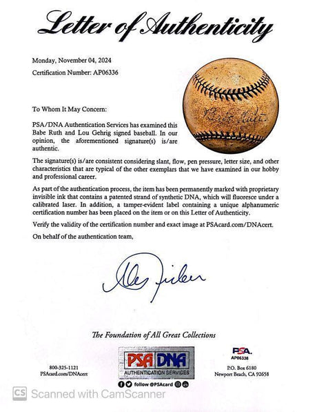 Babe Ruth Lou Gehrig Yankees Signed Suburban League Baseball PSA+BAS LOA