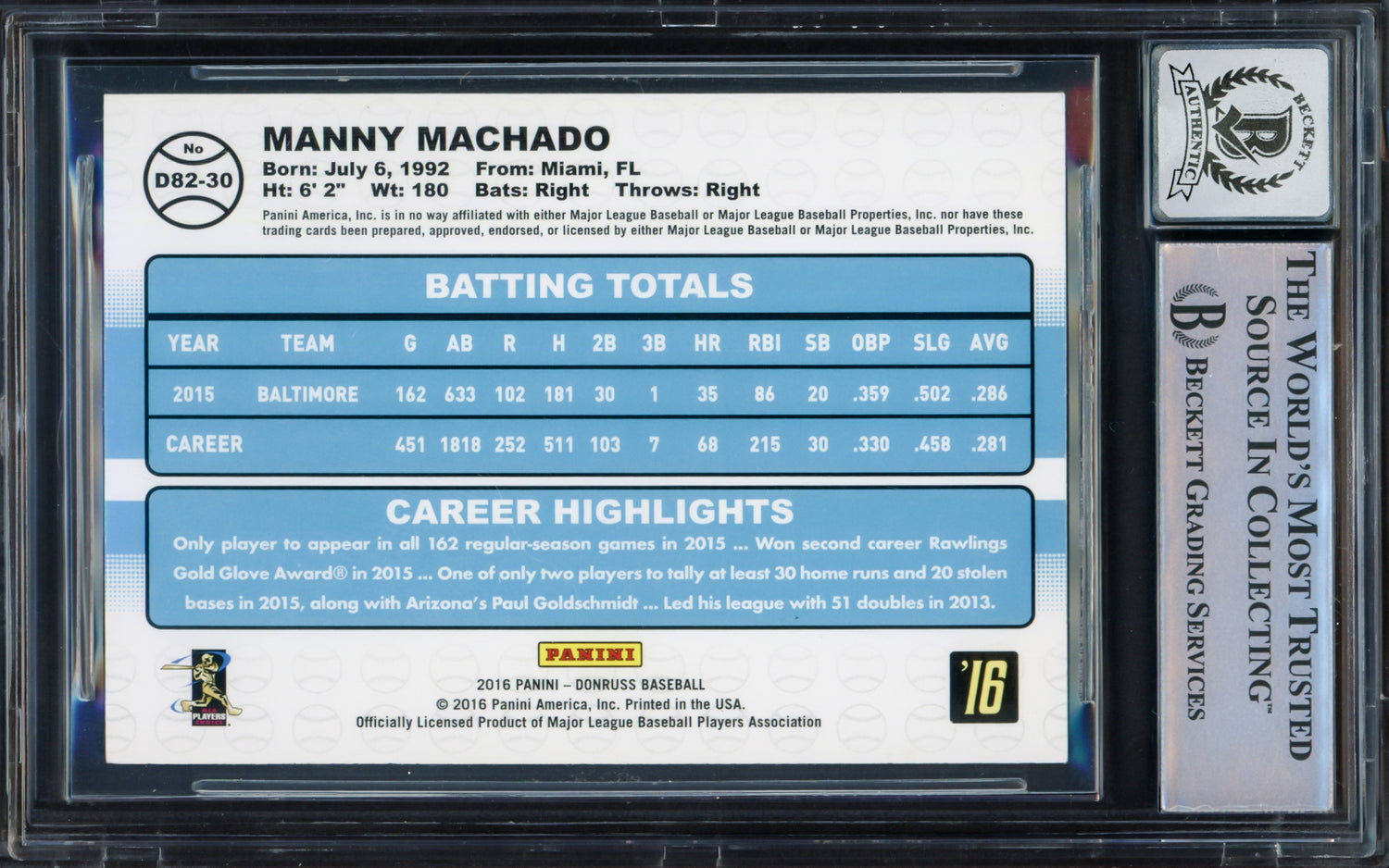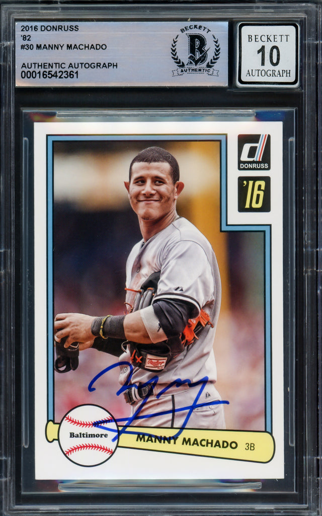 Manny Machado Autographed 2016 Donruss 1982 Card #D82-30 Baltimore Orioles Auto Grade Gem Mint 10 Beckett BAS #16542361