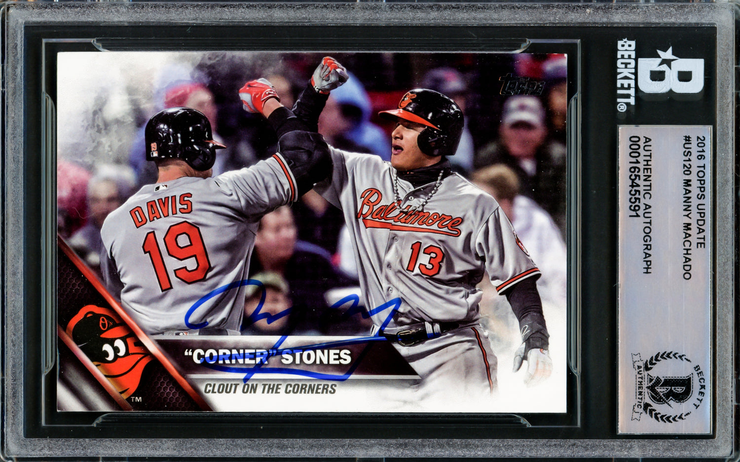 Manny Machado Autographed 2016 Topps Update Card #US120 Baltimore Orioles Beckett BAS #16545591