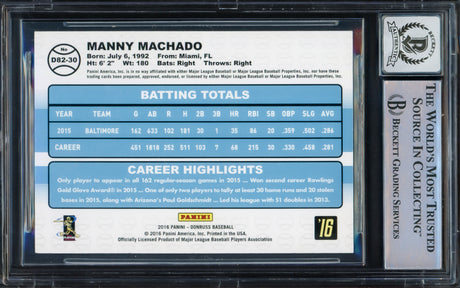 Manny Machado Autographed 2016 Panini Select Card #12 Baltimore Orioles Beckett BAS #16545581