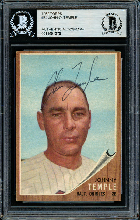 Johnny Temple Autographed 1962 Topps Card #34 Baltimore Orioles Beckett BAS #11481379