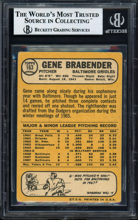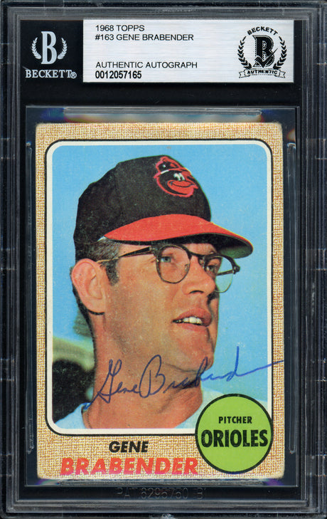 Gene Brabender Autographed 1968 Topps Card #163 Baltimore Orioles Beckett BAS #12057165