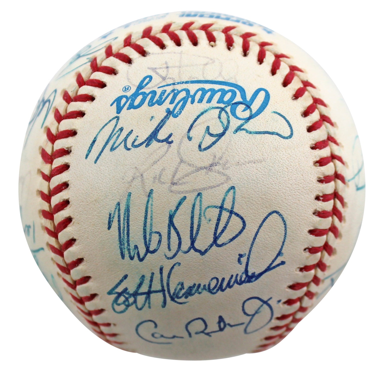 - Features signatures from 15+ Baltimore Orioles stars, including Armando Benitez, Shawn Boskie, Scott Erickson, Scott Kamieniecki, Jimmy Key, Terry Mathews, Mike Mussina, Chris Hoiles, Mike Bordick, Jeff Reboulet, Jeffrey Hammonds, B.J. Surhoff, and a clubhouse signature from Hall of Famer Cal Ripken Jr.
