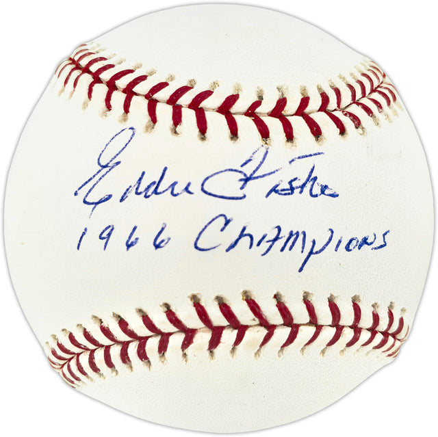 Eddie Fisher Autographed Official MLB Baseball Baltimore Orioles "1966 Champions" Beckett BAS QR #BU86905