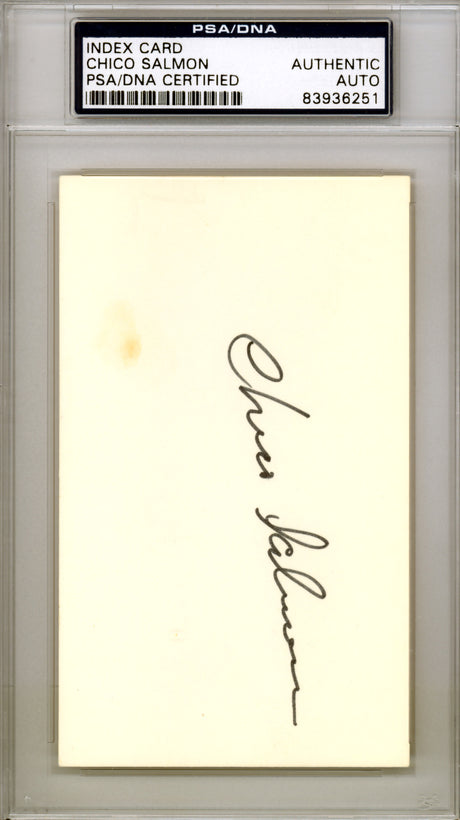 Very low stock (1 unit)$59Unit price /UnavailableChico Salmon Autographed 3x5 Index Card Baltimore Orioles PSA/DNA #83936251