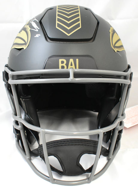 Zay Flowers Autographed Ravens F/S Salute 2025 SpeedFlex Helmet - Beckett W Holo