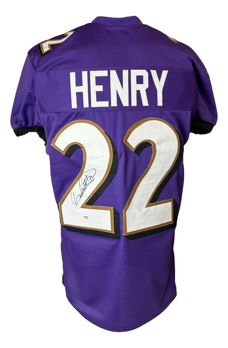 Very low stock (1 unit)$129Unit price /UnavailableDerrick Henry Baltimore Signed Purple Pro-Cut Football Jersey PSA/DNA