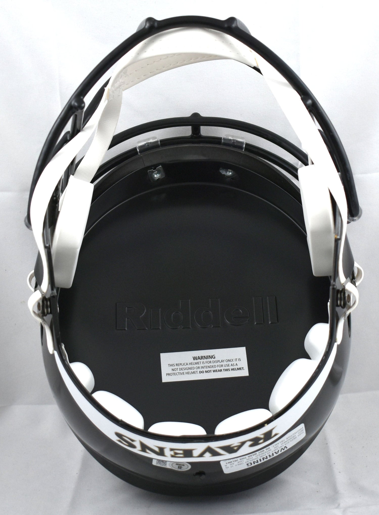 Own a piece of Baltimore Ravens history with this Jermaine Lewis hand-signed Riddell full-size Speed Replica football helmet. A key player in the Ravens' dominant Super Bowl XXXV-winning team, Lewis was a standout return specialist and wide receiver, making this autographed collectible a must-have for dedicated fans and memorabilia collectors.